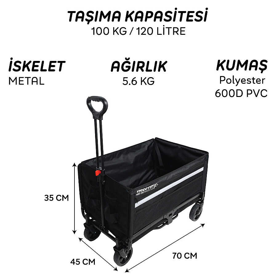 Hafif ama dayanıklı malzemelerden üretilmiş olan bu vagon, geniş iç hacmi sayesinde birçok eşyayı aynı anda taşıyabilir.